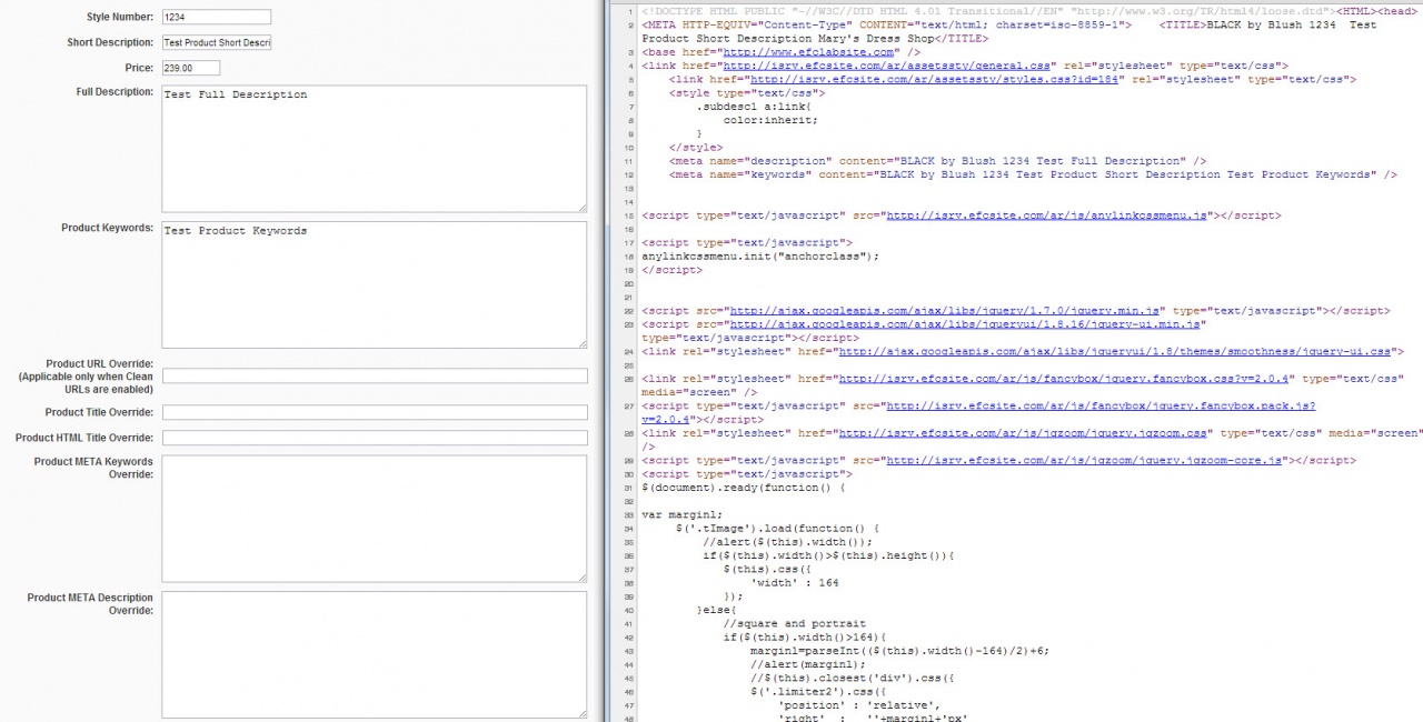 The eSC system handles creation of default keyword and description META tags for products. However, adding your own unique descriptions and tags has an SEO benefit as it sets your site apart from all the others that use the default vendor provided descriptions. On the edit product page there are several fields you can customize: